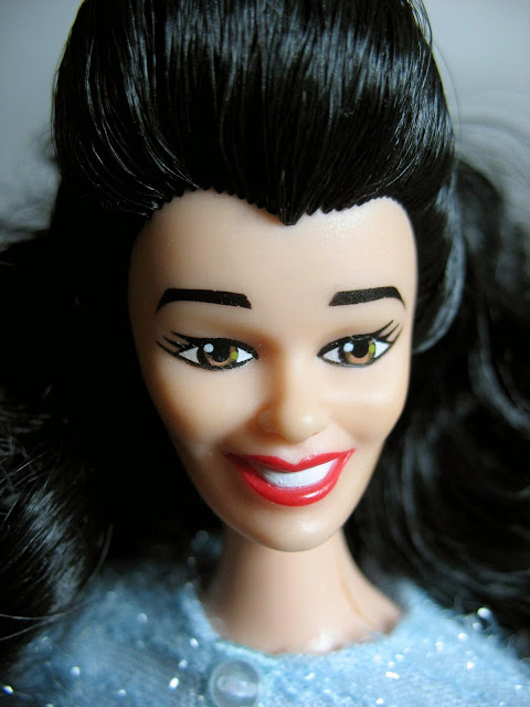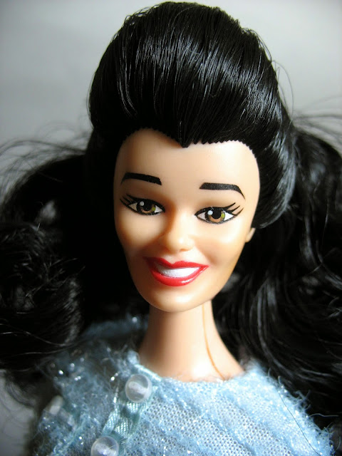 Z racji tego, że ‚The Nanny’ została pozbawiona swojego oryginalnego outfitu (a był to właśnie niebieski kostiumik, wzorowany na linii Fashion Avenue), na potrzeby sesji (i chyba już po wsze czasy), ubrałem ją w strój, którego prawowitą właścicielką w roku 1998 była Teresa ‚Glam N Groom’, dorównujący swoją kiczowatą formą serialowym kreacjom. Przyznajcie, że ten błękit wspaniale komponuje się z kruczoczarnymi włosami!
