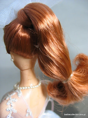 Przyjrzyjcie się teraz sposobowi montażu welonu na głowie lalki oraz… jej grzywce! Czyż nie mam racji, twierdząc, że reprodukcje pochodzące z lat 90., pozbawione tzw. fryzowania na grzywce, tracą wiele na uroku?