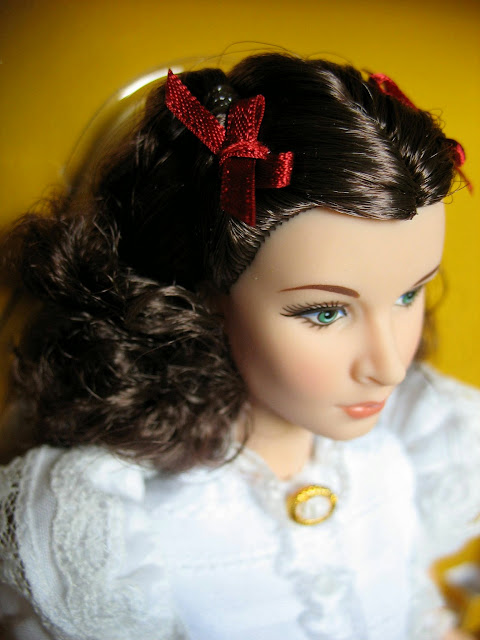Kilka miesięcy temu, podziwiając zdjęcia promocyjne wszystkich trzech lalek, wydanych z okazji 75. rocznicy postania filmu, wielce ubolewałem nad faktem, że ten właśnie model został pozbawiony niezwykle istotnego elementu – uniesionej brwi. Teraz, kiedy przyjrzałem się nowej Scarlett, dostrzegłem, że zadbano i o ten szczegół! Choć nieco złagodzona, zwłaszcza w porównaniu z wersją z 2001 roku, wygięta w łuk, uniesiona brew pozostała, nadając lalce książkowe „kocie spojrzenie”.
